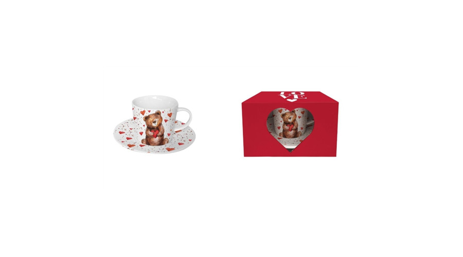 Porceláncsésze+alj, 220ml, dobozban, Teddy Bear with a Heart – Duo Gift