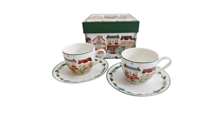 Porceláncsésze+alj, 90ml, 2 személyes, dobozban, Christmas City 2 – Duo Gift