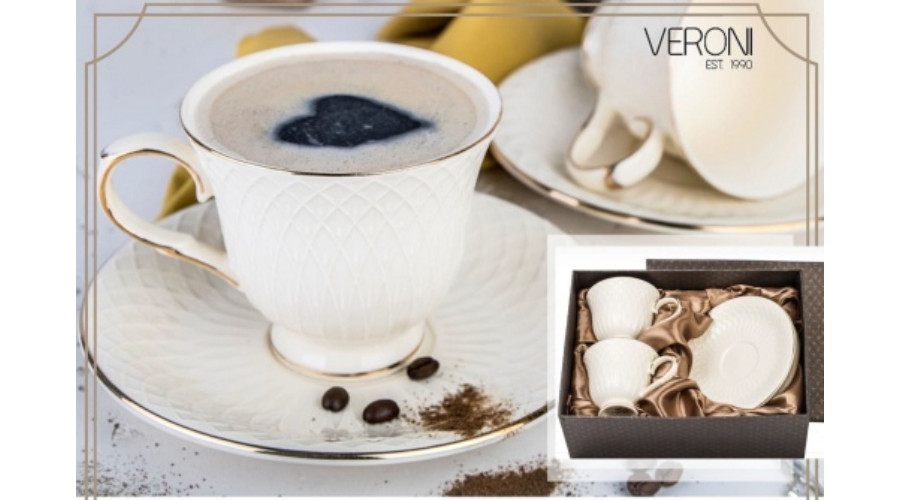 Amy porceláncsésze+alj, 210ml, 2 személyes, dobozban – Veroni