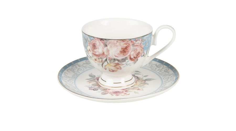 Porceláncsésze+alj 200ml, kék-rózsaszín rózsás – Clayre-Eef