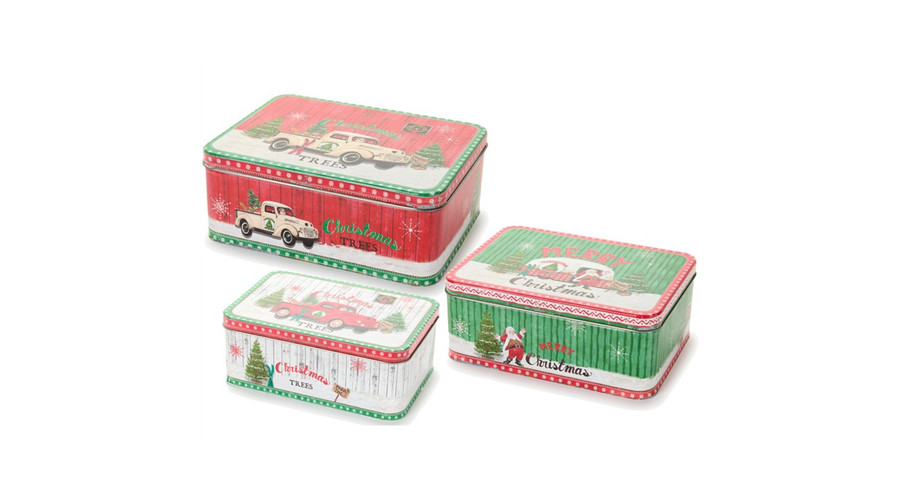 Fémdobozszett 3 db-os, mikulásautóval, 29x22x11/25,5x18,5x10/22x15x9cm – Nuvole di Stoffa
