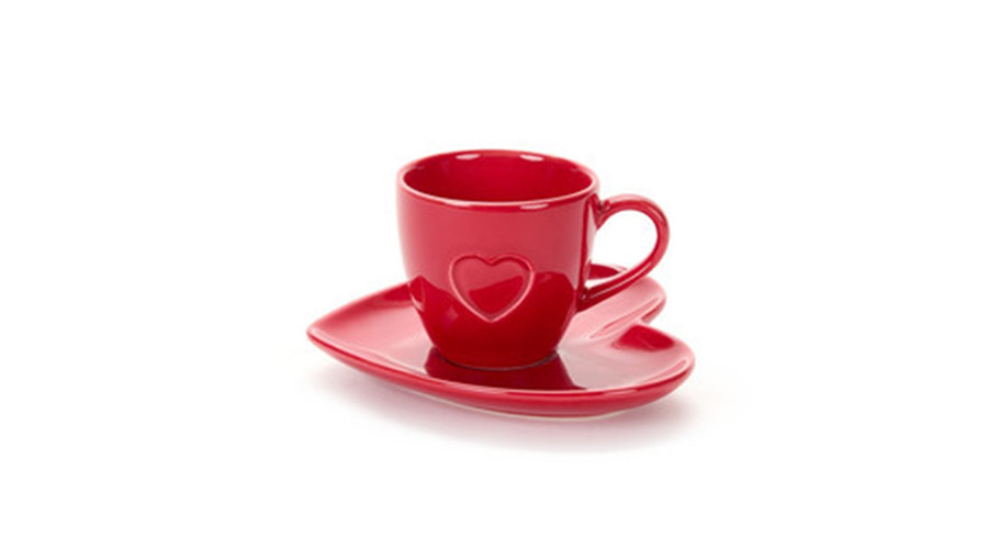 Piros presszóscsésze+alj, szív forma, porcelán, 6,2x3,7x5,8cm – Nuvole di Stoffa