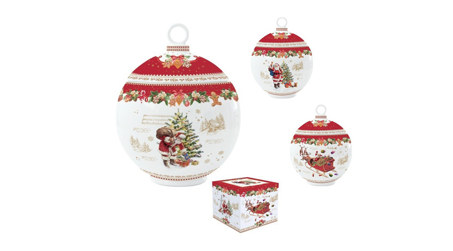 Porcelántároló gömb 12x15,5cm, dobozban, Christmas Memories – Easy Life-Nuova