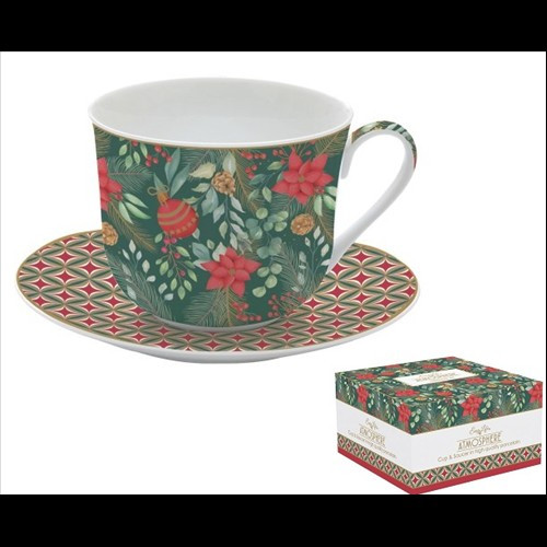 Porcelán reggelizőcsésze + alj 400ml, dobozban, Atmosphere, Christmas Joy