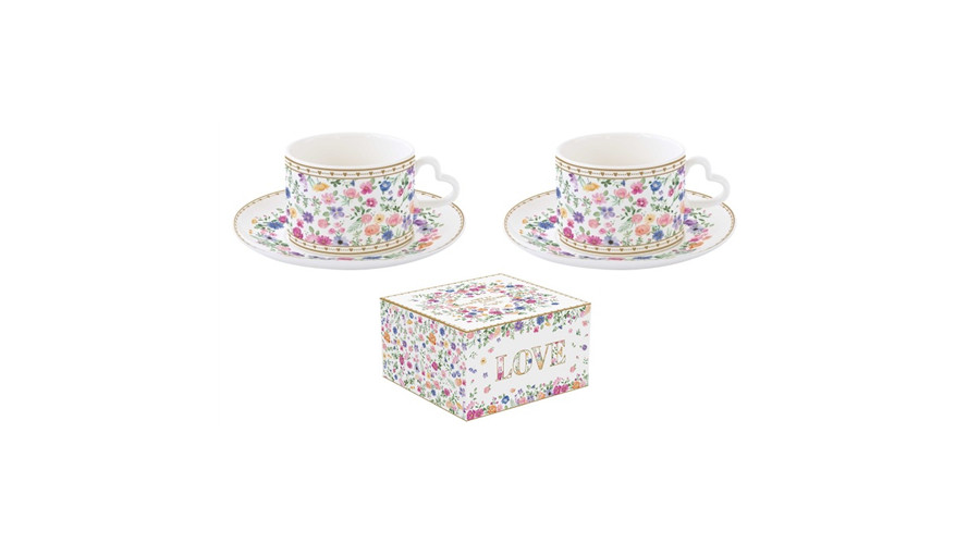 Porceláncsésze+alj 240ml, 2 személyes, dobozban, Mon Amour – Easy Life-Nuova