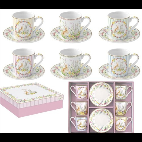 Easy Life-Nuova Porcelán eszpresszócsésze+alj 6 személyes, 100ml, dobozban, Coffee Mania, Happy Easter