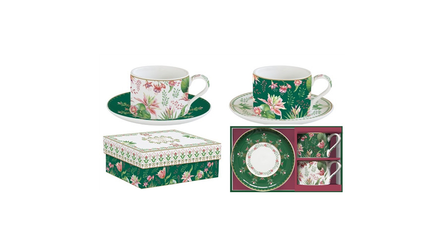 Porceláncsésze+alj 240ml, 2 személyes, dobozban, Botanic Chic – Easy Life-Nuova