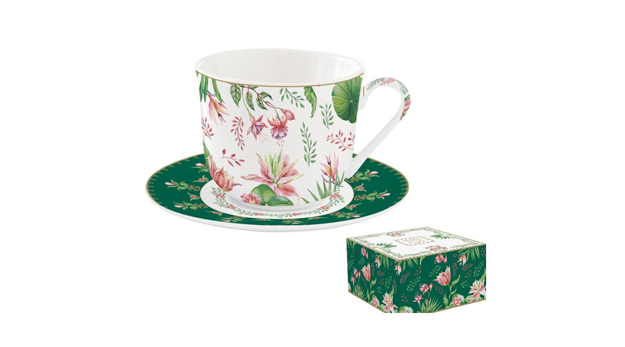 Porcelán reggelizőcsésze+alj 370ml dobozban, Botanic Chic – Easy Life-Nuova