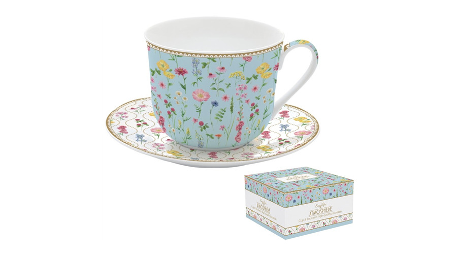 Porcelán reggelizőcsésze+alj,400ml, dobozban, Meadow Flowers, Atmosphere – Easy Life-Nuova