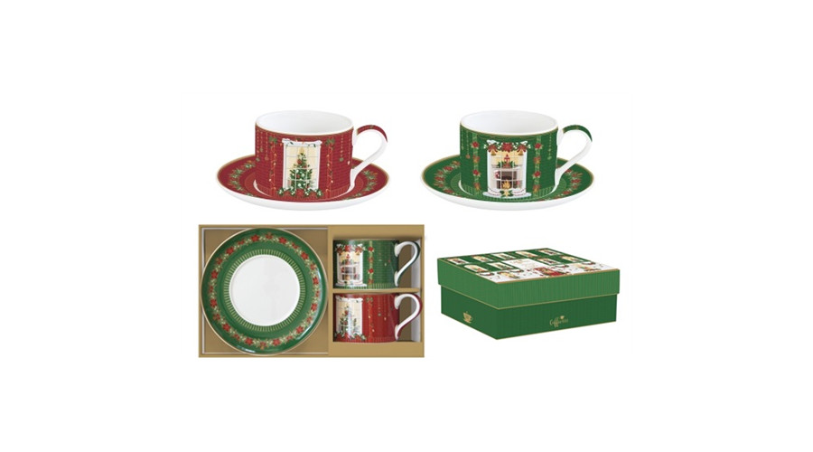 Porceláncsésze+alj 240ml, 2 személyes, dobozban, Coffee Mania, Festive Avenue – Easy Life-Nuova