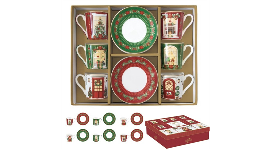 Porcelán eszpresszócsésze+alj 6 személyes, 100ml, dobozban, Coffee Mania, Festive Avenue – Easy Life-Nuova