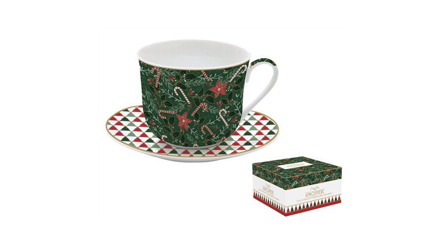 Porcelán reggelizőcsésze+alj 400ml, dobozban, Atmosphere, Fancy Christmas – Easy Life-Nuova