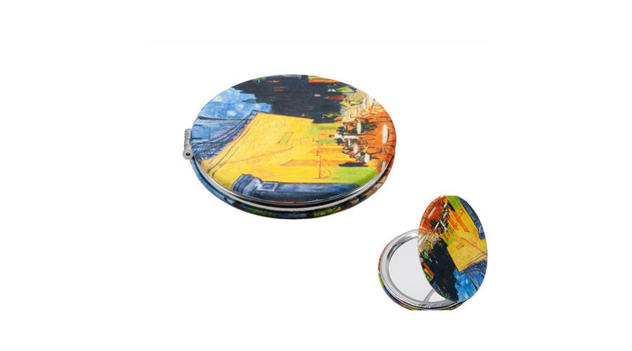 Textilbevonatú zsebtükör 7cm, nagyítós tükörrel, Van Gogh:Kávéház éjjel – Fridolin