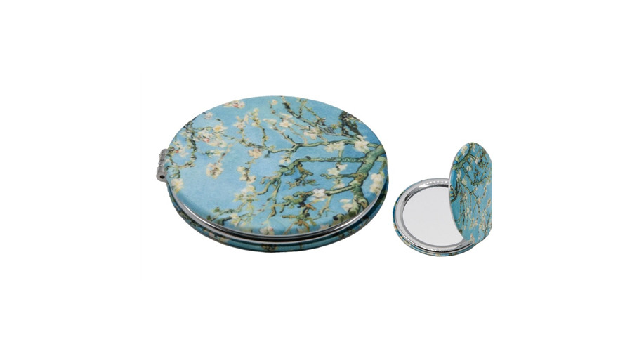 Textilbevonatú zsebtükör 7cm, nagyítós tükörrel, Van Gogh:Mandulavirágzás – Fridolin
