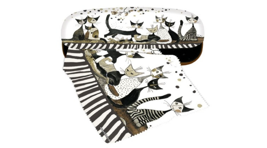 Szemüvegtok textilbevonatú, törlőkendővel, 16x4x6,5cm, Rosina Wachtmeister:Cats sepia – Fridolin