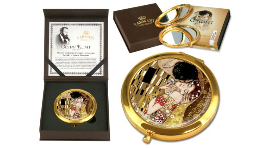 Kézitükör nagyítós, fémkeretben, dobozban 11cm, Klimt:The Kiss – Carmani