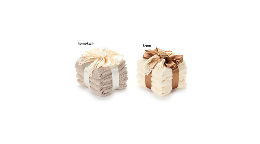 Ajándékszett:Kistörülköző 30x30cm, 4db, pamut, skót kockás masnival, krém – Nuvole di Stoffa