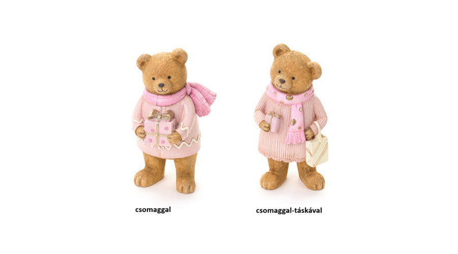 Rózsaszín sálas maci 8,5x7,5x15,5cm, műanyag dekorfigura, csomaggal és táskával – Nuvole di Stoffa
