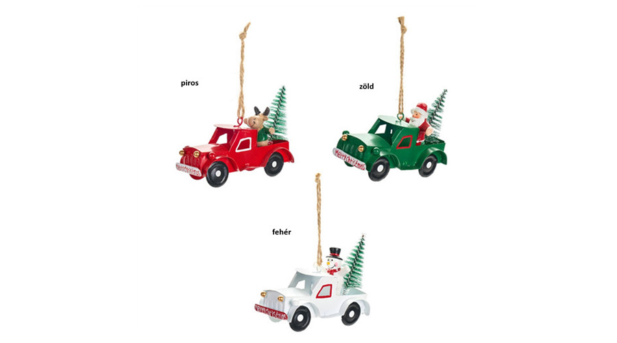 Merry Christmas autó 10x5x8cm, fém-műanyag függődísz dekorfigura, zöld – Nuvole di Stoffa