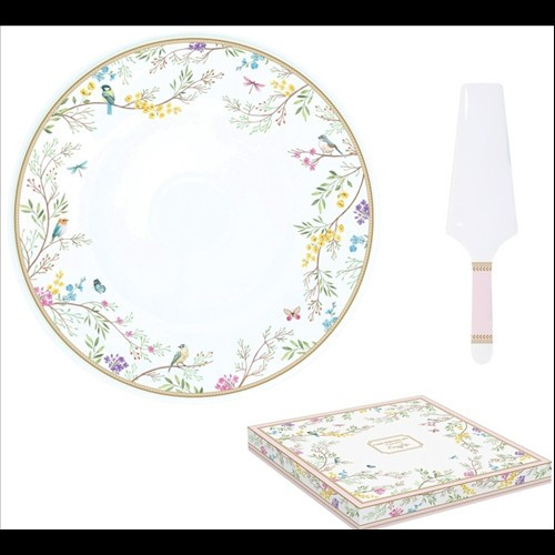 Easy Life-Nuova Porcelán tortatál lapáttal, 32cm, dobozban, Birds Melody