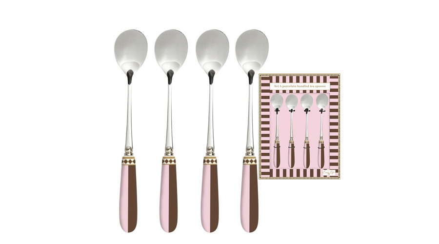 Rozsdamentes teáskanál szett 4 db-os, porcelánnyéllel, Sweet Moments – Easy Life-Nuova