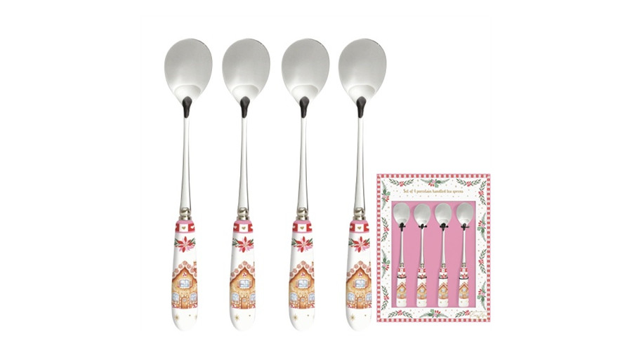 Rozsdamentes teáskanál szett 4 db-os, porcelánnyéllel, Sweet Christmas – Easy Life-Nuova